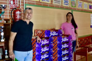 La entrega en el CEIP Concepción Arenal contó con una visita muy especial: los jugadores y el segundo entrenador de Jimbee Cartagena compartieron con los niños y animaron a todos a participar en el concurso.