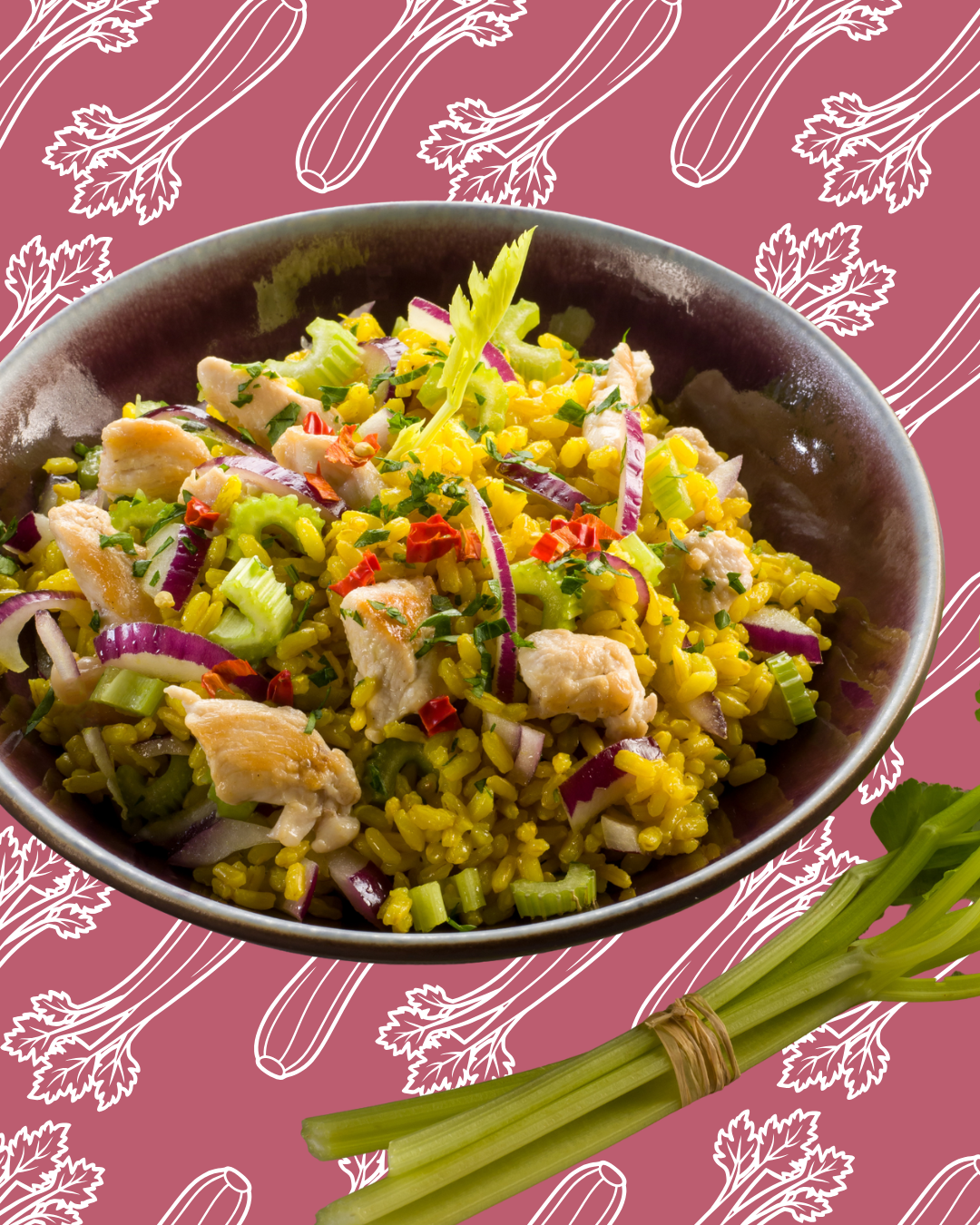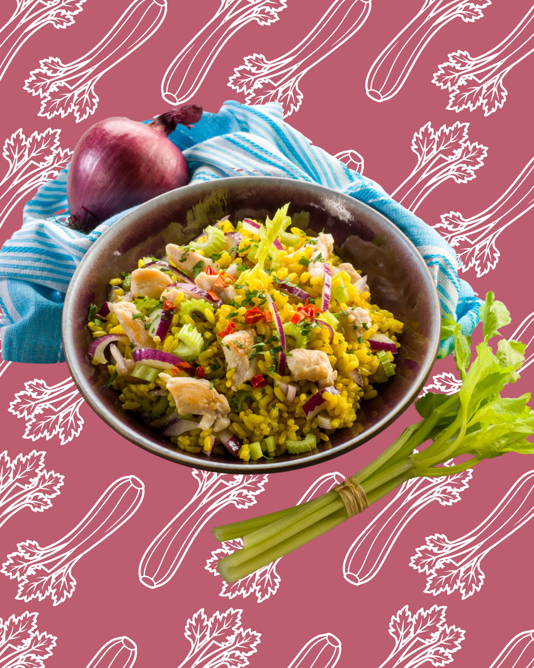 2. Picar en cuadros el apio, los pimentones y la cebolla roja.