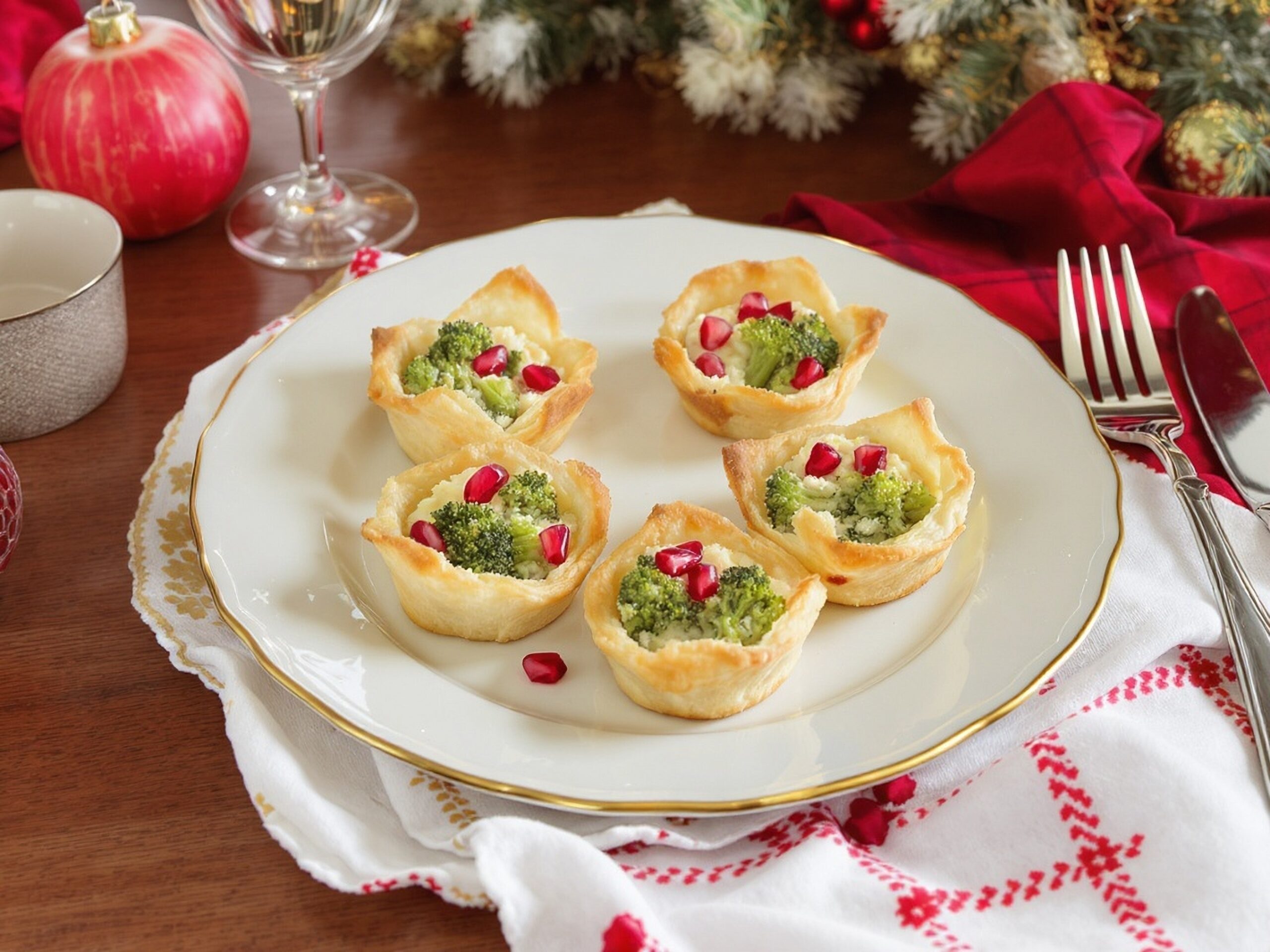 Precalienta el horno a 200 °C. Estira la masa de hojaldre y córtala en cuadrados. Colócalos en un molde para muffins formando pequeñas cestitas. Pincela ligeramente con la yema y hornea durante 8–10 minutos, hasta que empiece a dorarse.