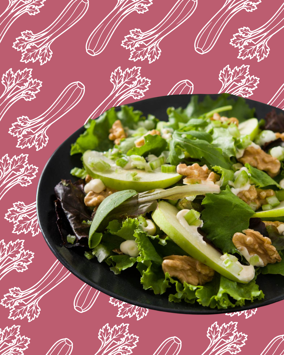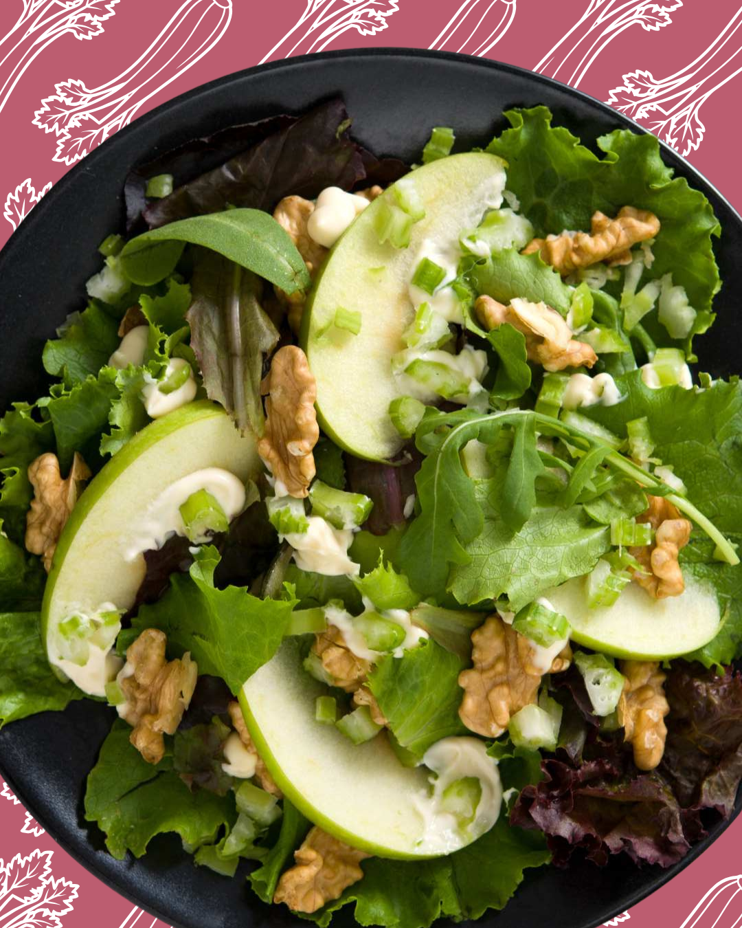 En un bol grande, mezcla las lechugas, la rúcula, la manzana y el apio.