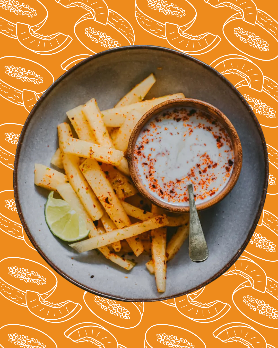 En un bol pequeño, mezcla el yogur, el zumo de lima y el endulzante. Añade una pizca de chile en polvo. Sirve las fries con salsa de yogur.