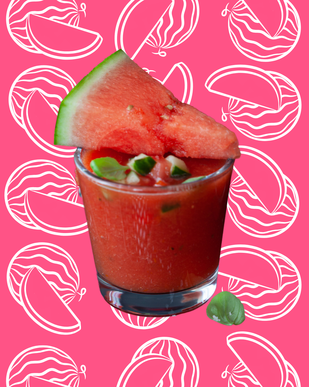 Para la presentación, puedes acompañar el gazpacho con picatostes de cáscara de sandía encurtida (opcional)