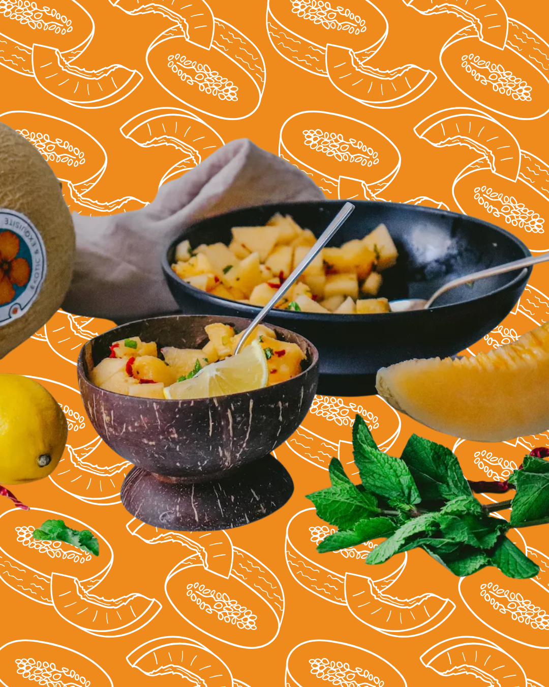 3. Añade el melón a un bol y añade la menta picada. Agrega la sal, el chili y el azúcar y mezcla to-do bien.