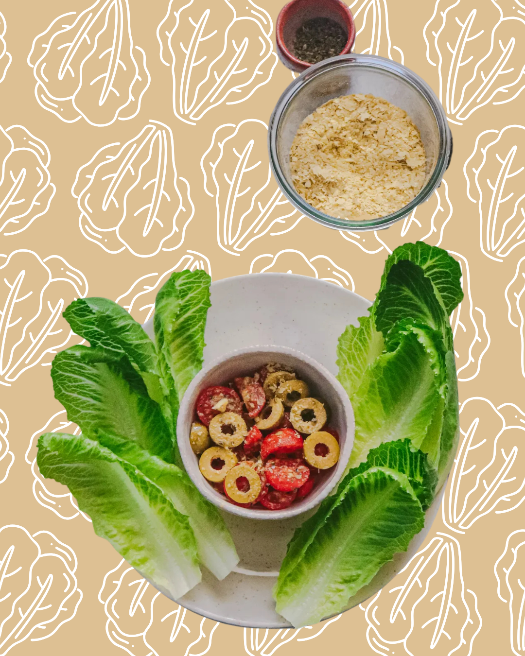 Añade orégano, sal y levadura nutricional. Luego un poco de AOVE, vina-gre y combina.