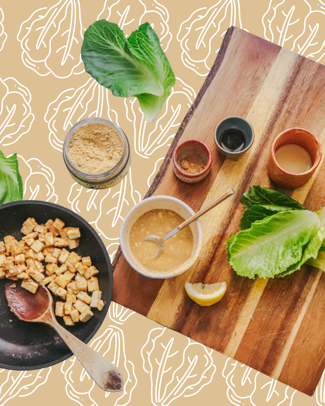 4. Deshoja el jimbee, lávalo y con ayuda de una cuchara sirve el tofu satay. Añade más salsa por encima.