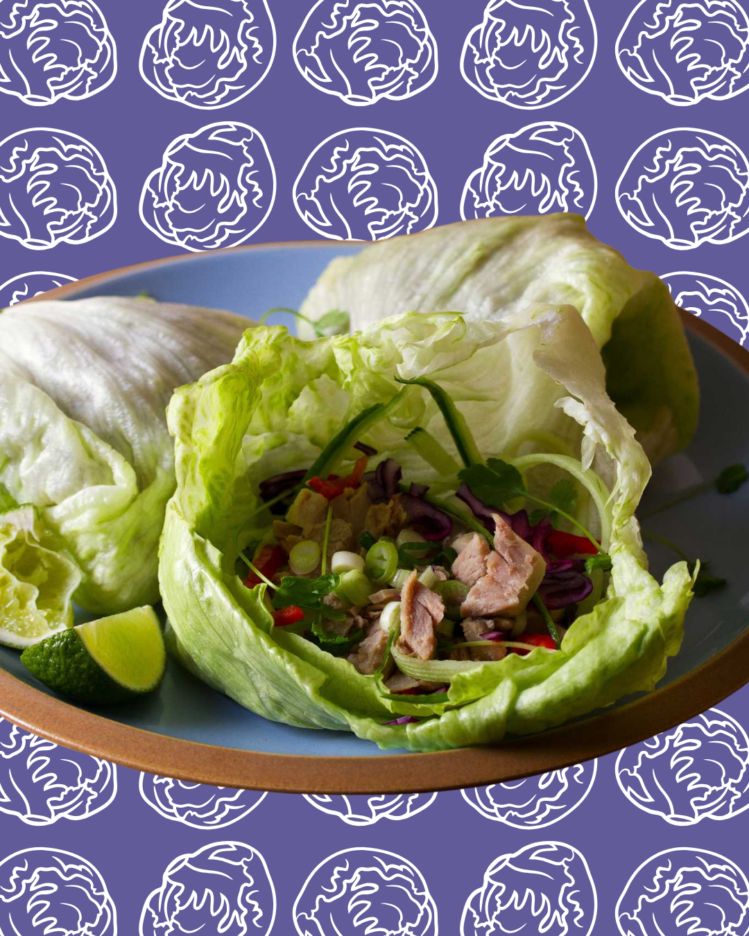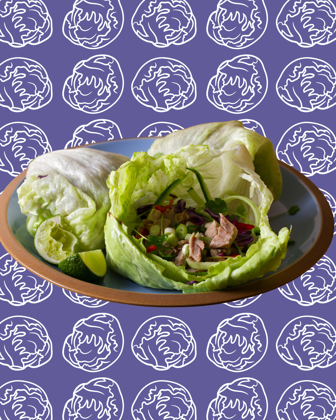 • Lava bien las hojas de lechuga iceberg, separándolas con cuidado para no romperlas. Elige las hojas más grandes y firmes para que puedan servir de «barquitas» o recipientes.