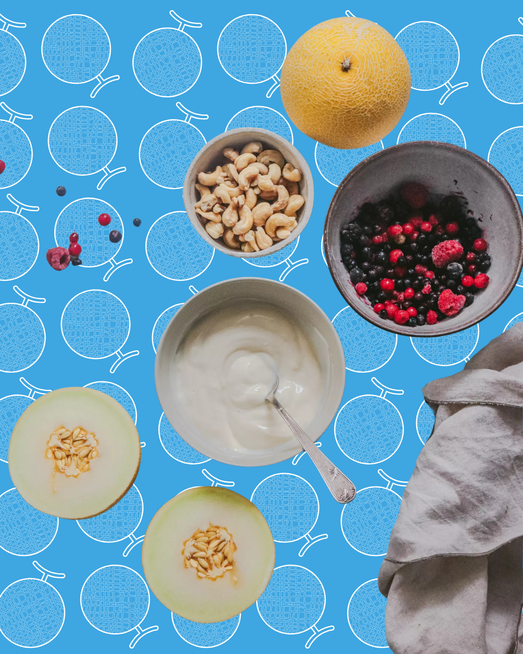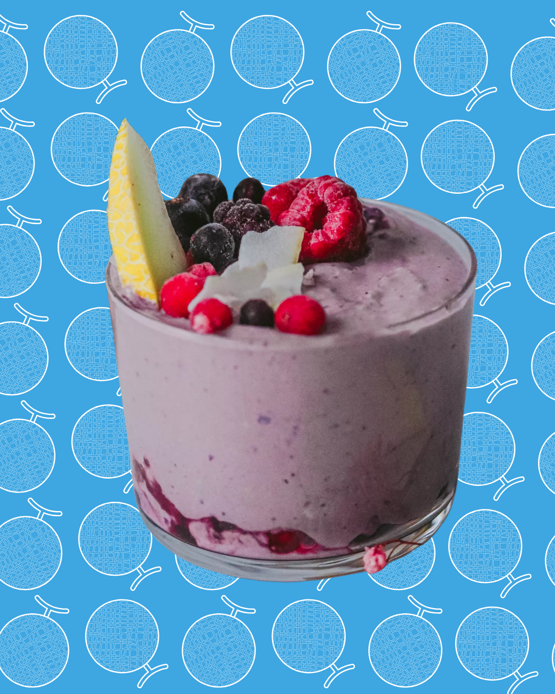 Sirve en vasitos, con un poquito de melón, flakes de coco y algun fruto rojo.
