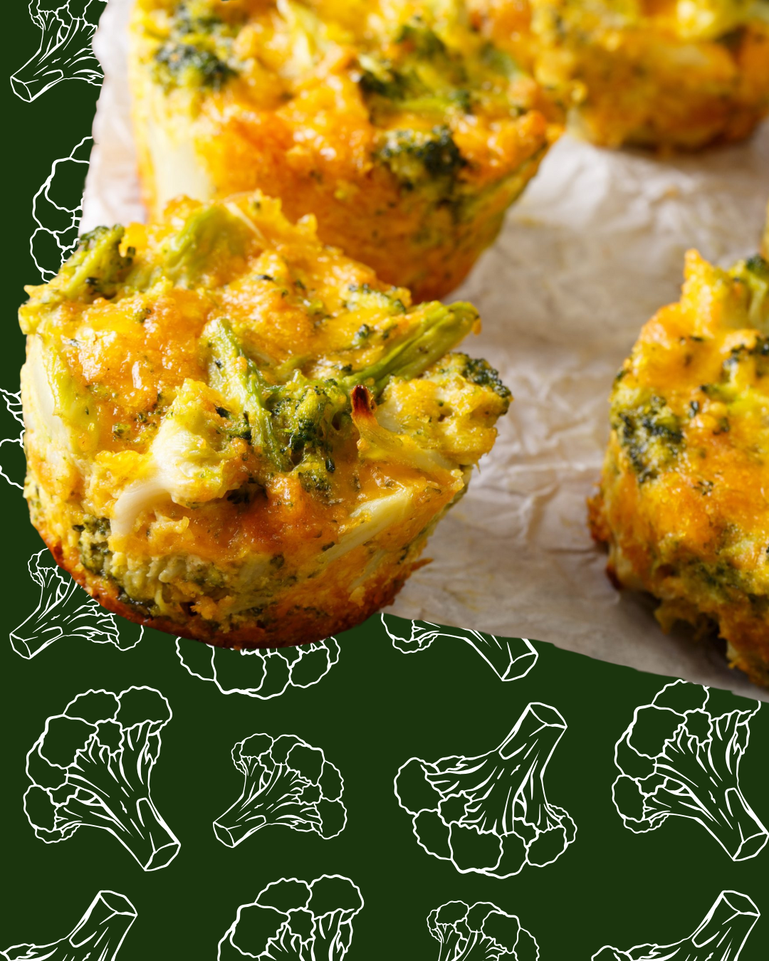 Muffins de brócoli con queso cheddar, huevo y tomillo
