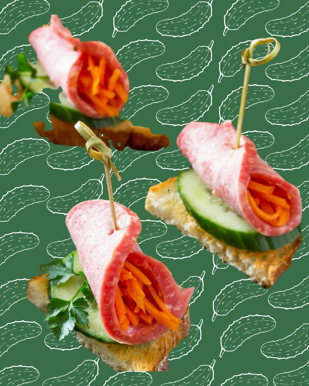 Coloca una capa de rodajas de pepino sobre cada rebanada de pan.