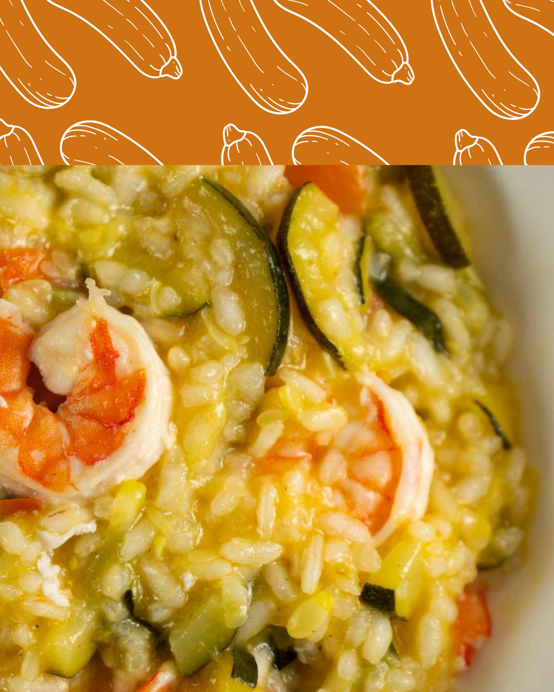 Risotto de calabacín y gambas al estilo italiano