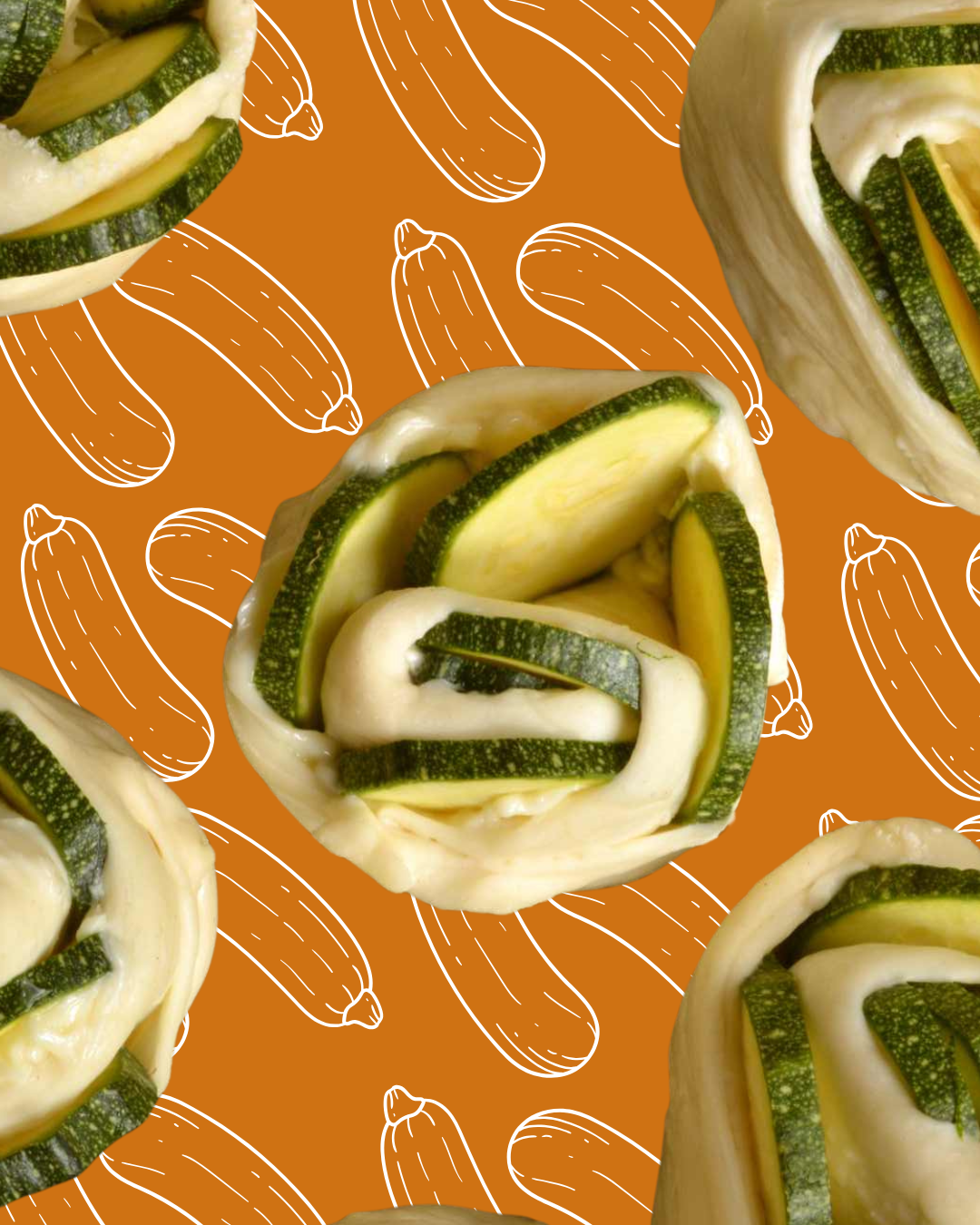 5. Coloca las láminas de calabacín sobre cada tira de masa, superponiéndolas ligeramente. Espolvorea con sal, pimienta y queso parmesano si deseas.