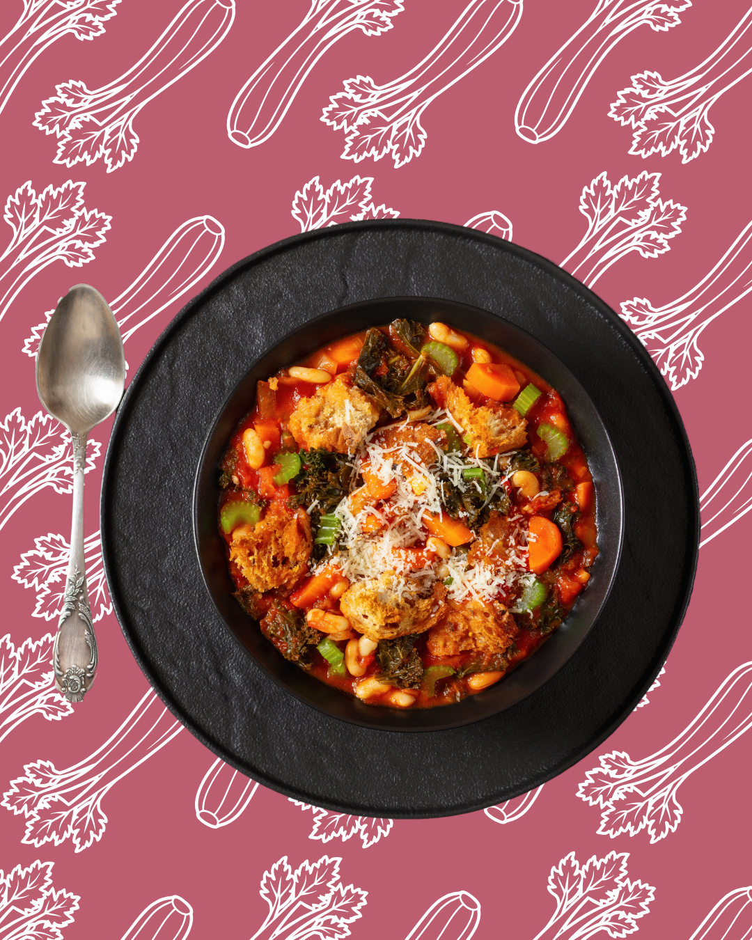 4. Incorpora las alubias blancas, la col rizada y el apio reservado (que aportará textura ligeramente crujiente). Cocina 10–15 minutos más. Ajusta de sal y pimienta.