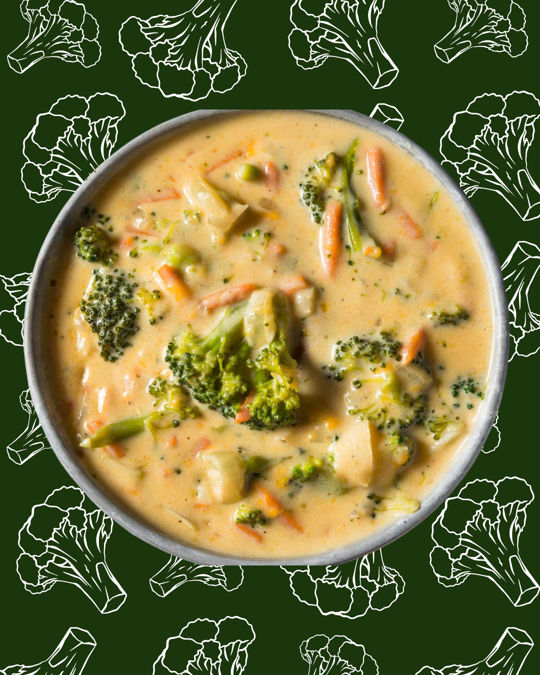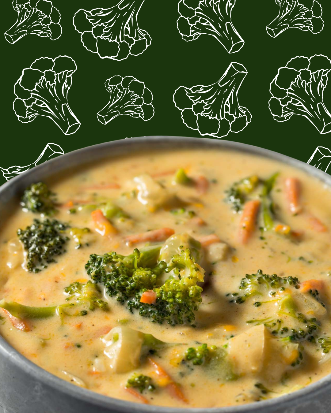 Sopa de brócoli con queso cheddar y pan