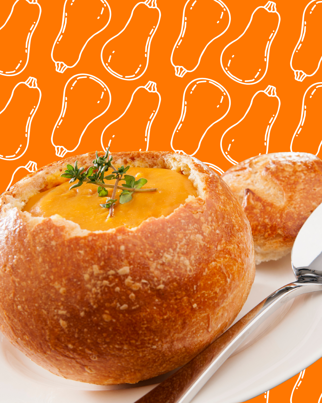 Sopa de Calabaza Cacahuete Servida en Pan