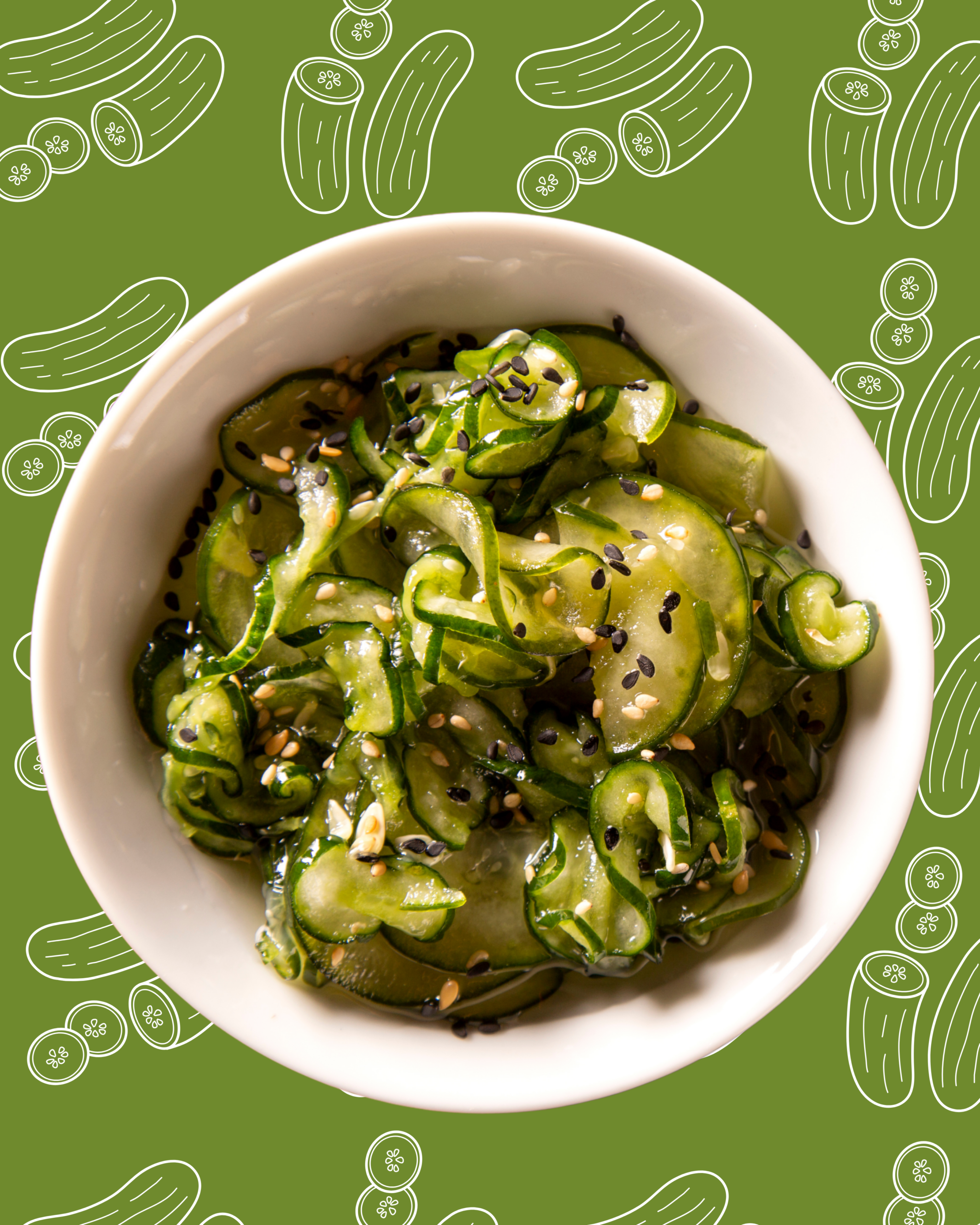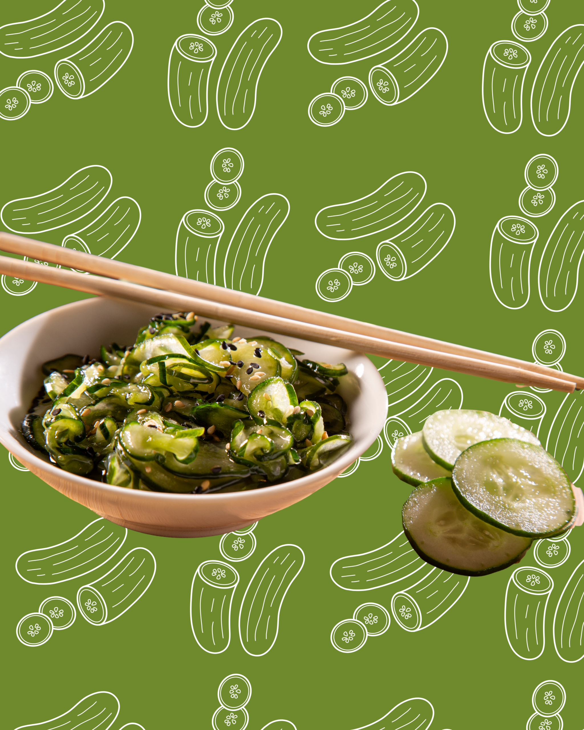 - Coloca los pepinos en un bol, añade la sal y mezcla. Déjalos reposar durante 10 minutos para que suelten el agua.