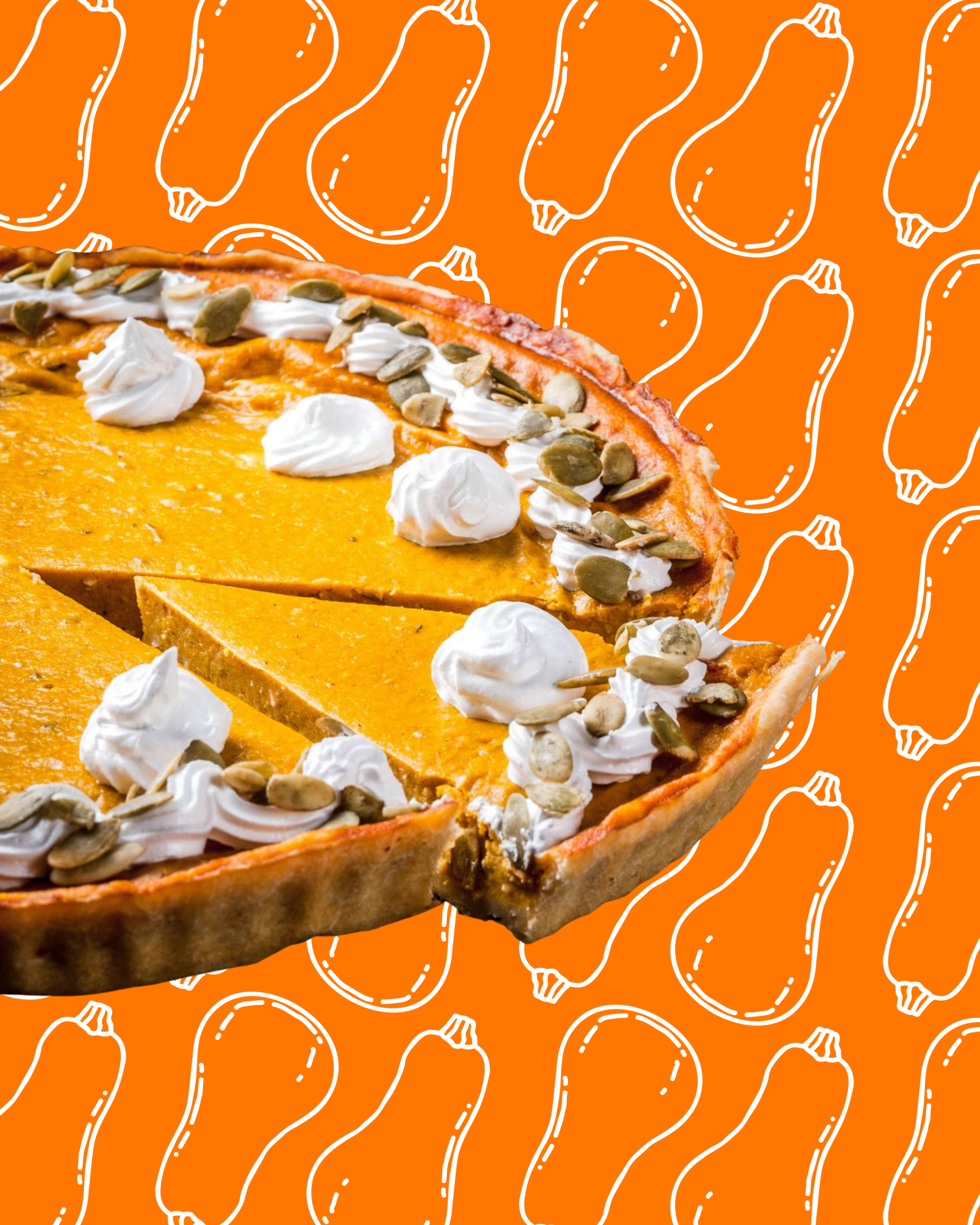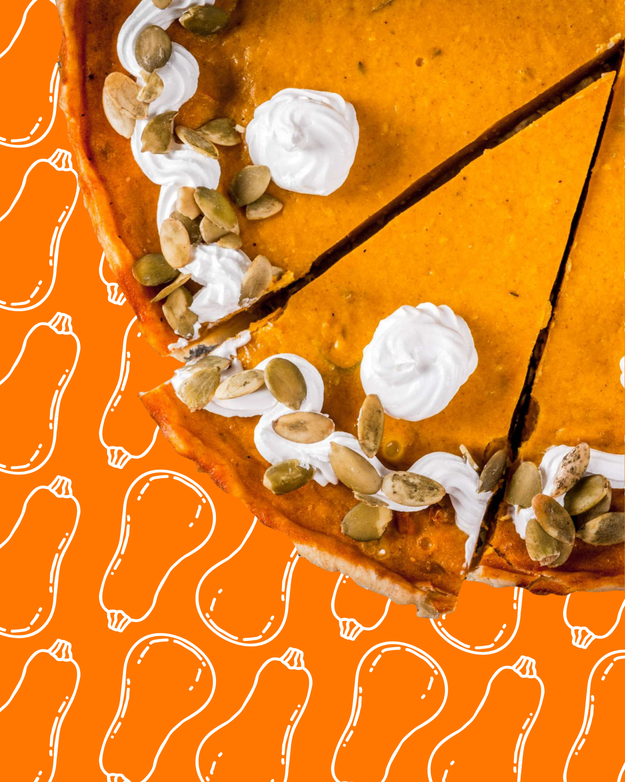 Mezcla en un bol el puré de calabaza cacahuete Jimbee con la nata, huevos, azúcar y especias hasta obtener una crema homogénea.