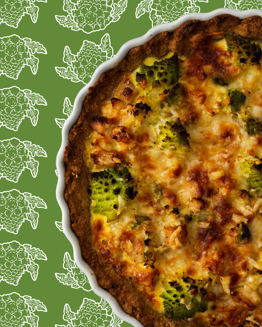Tarta Quiche de Romanesco, Queso y Pollo Desmechado