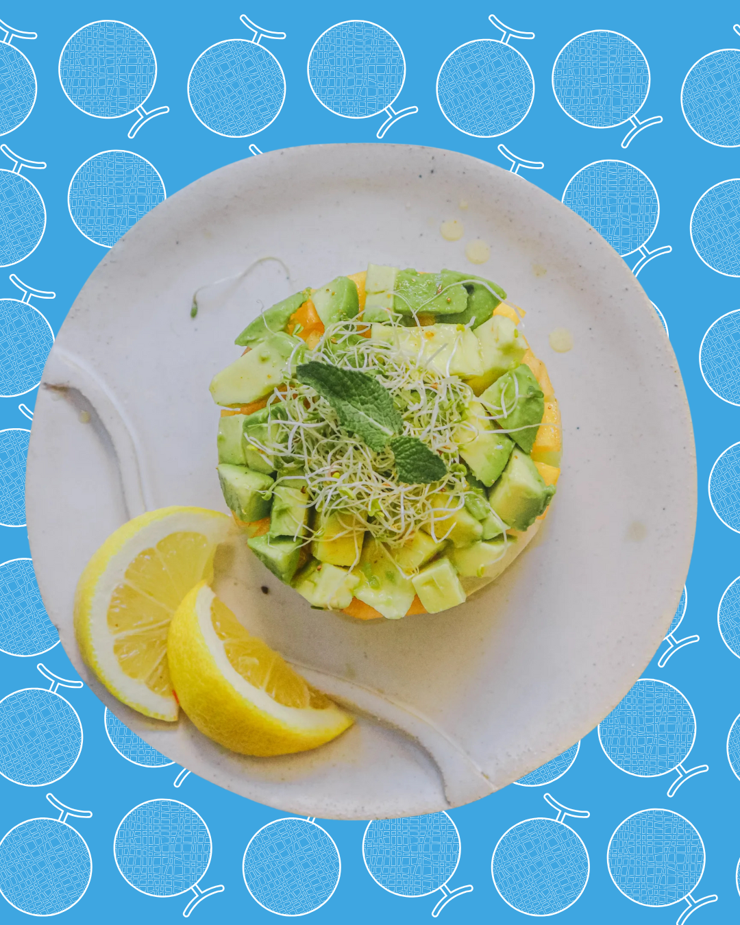 2. Cuando tengas las 3 capas en el molde de tartar, añade los germinados y la menta.