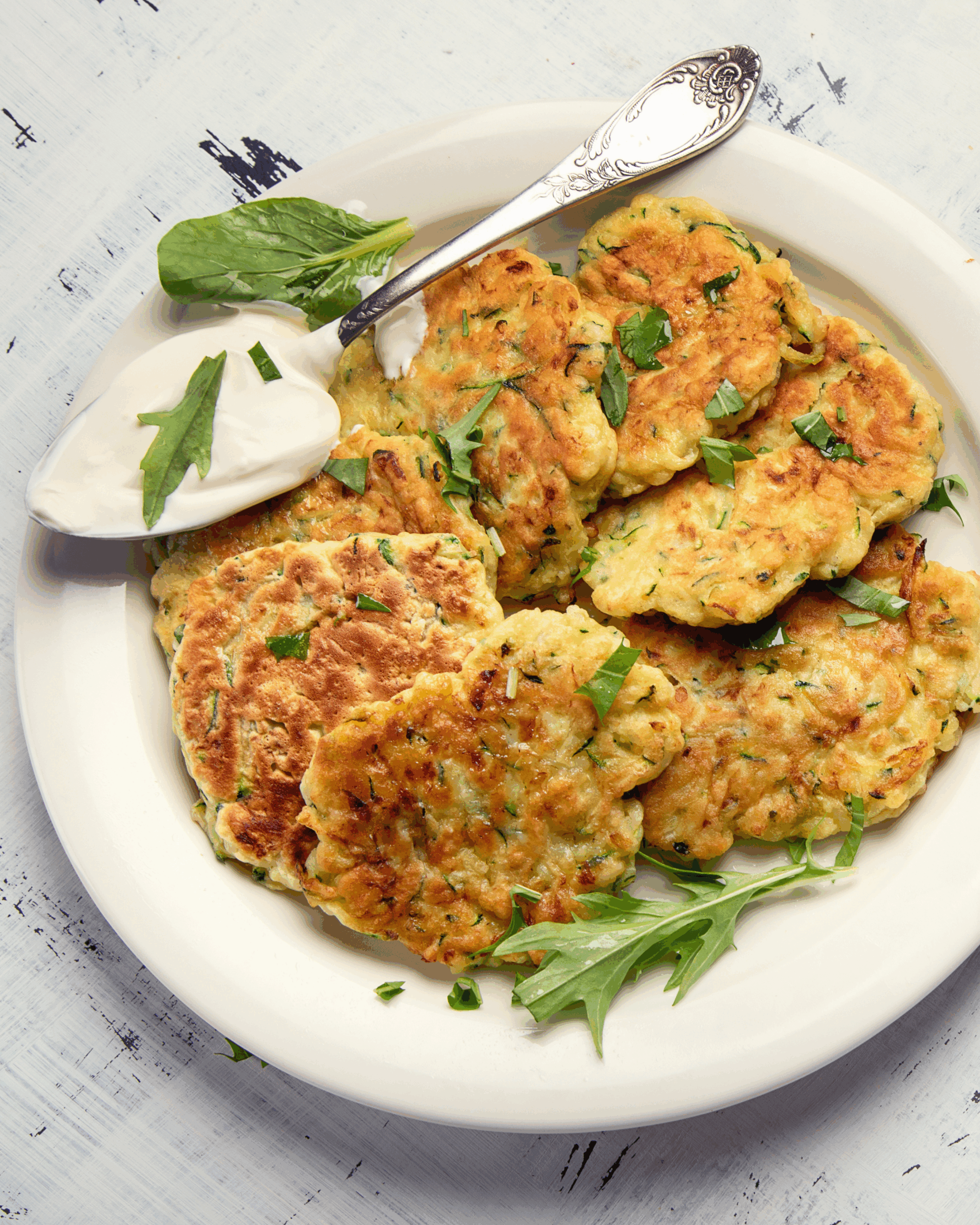 4. Mezcle las patatas rallada con el calabacín, la harina, la ralladura de limón, la sal, la pimienta y el polvo de hornear.